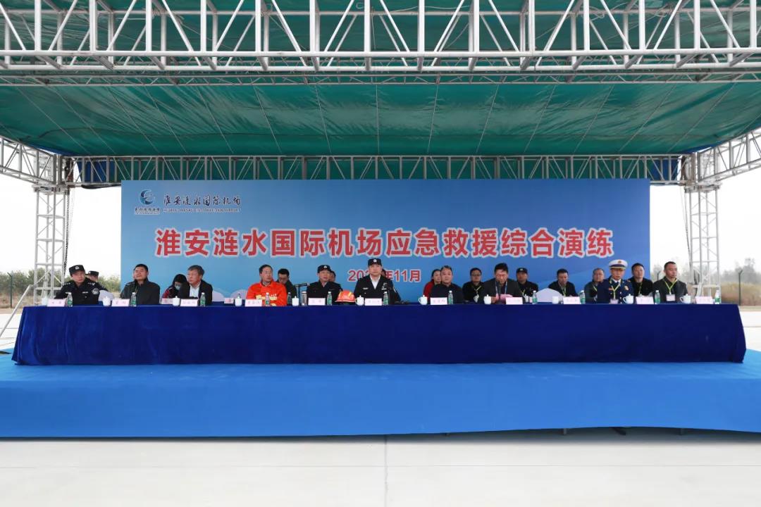 江苏民航监督管理局副局长秦晨阳、淮安机场公司董事长孙广辉出席活动,市公安局副局长潘家新具体指挥现场应急处突工作。